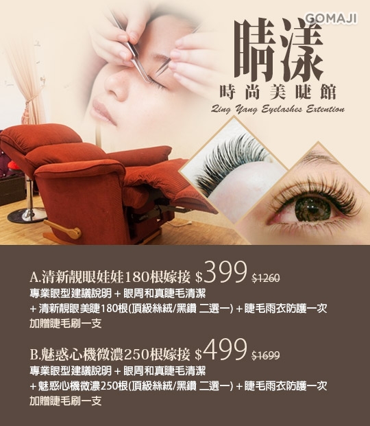 台中知名美睫店家!【睛漾時尚美睫館】給您如同洋娃娃般的捲俏睫毛,造型纖長、濃密,靈動的大眼睛看起來楚楚動人!還加贈睫毛刷一支!