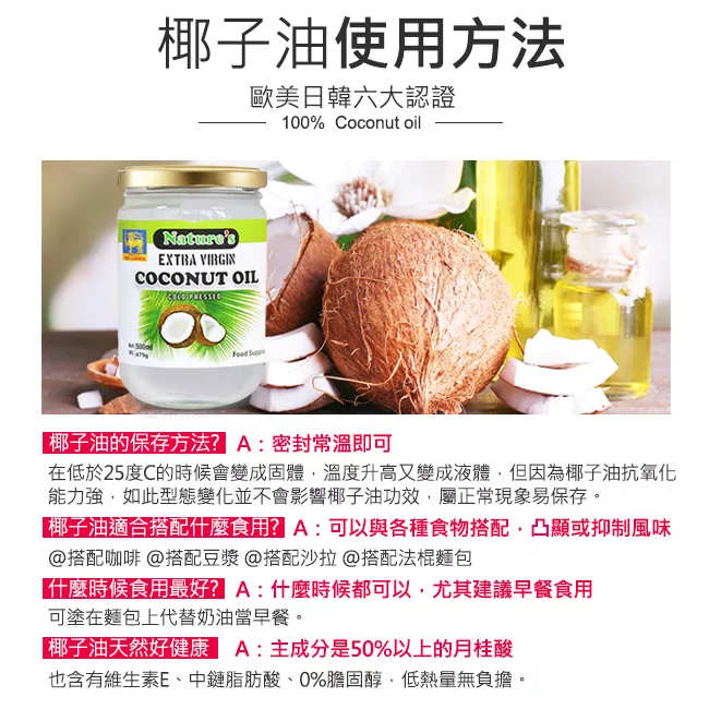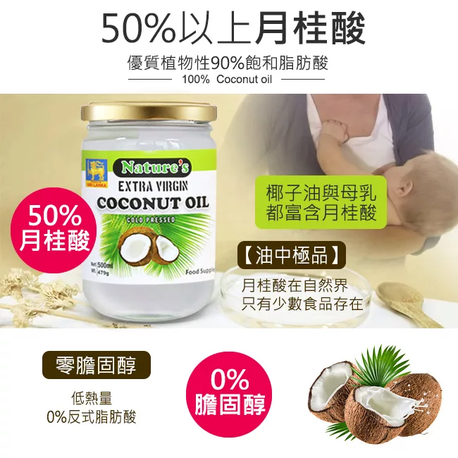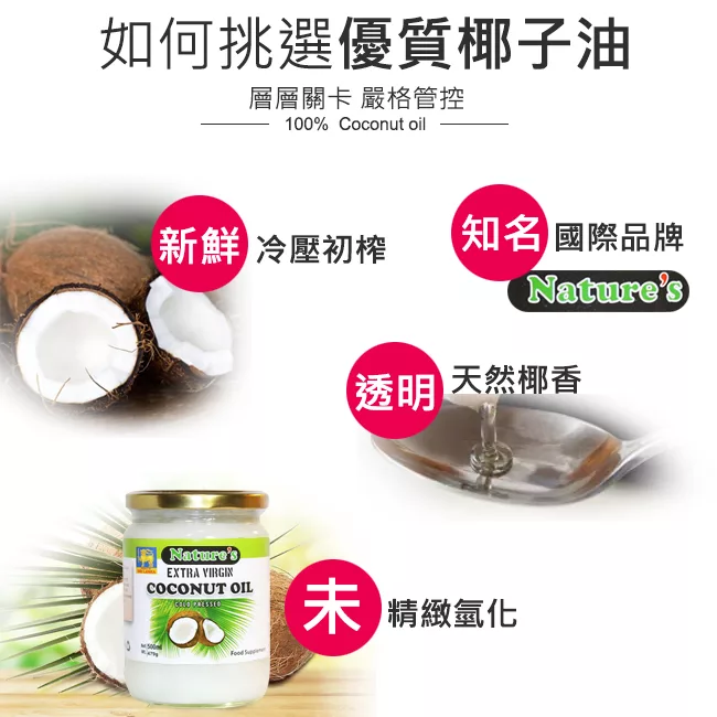 【Nature’s 娜萃斯】500ml冷壓初榨椰子油![]()