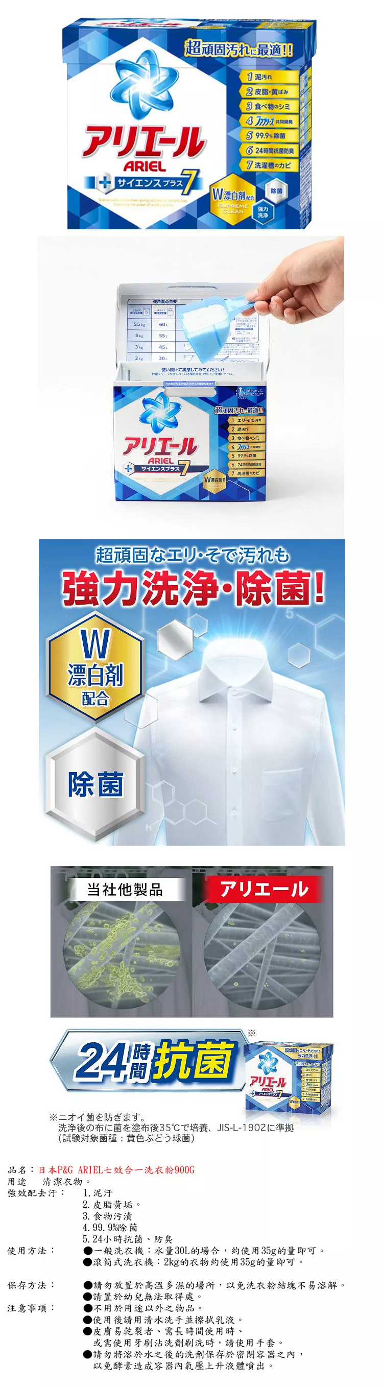 【日本P&G】ARIEL七效合一洗衣粉900g![]()