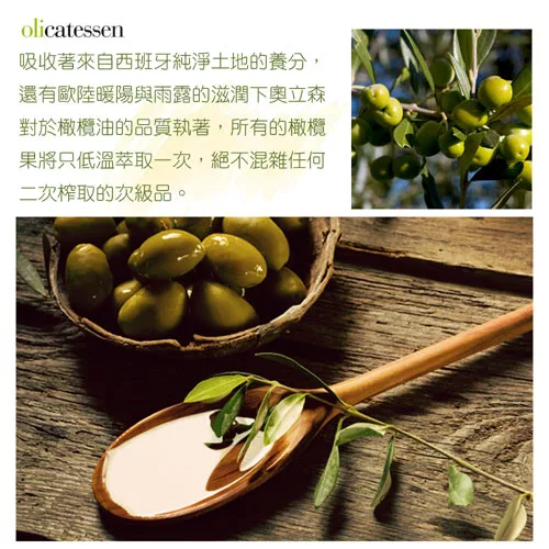 以金屬瓶裝隔離光線保護橄欖油,透過冷壓萃取的天然之營養元素,從種植、人工採收、萃取及裝瓶之每一項製程嚴格控管陽光、空氣、熱氣對橄欖油品質之影響,確保頂級初榨橄欖油符合歐盟相關規範,消費者可以安心選購。?