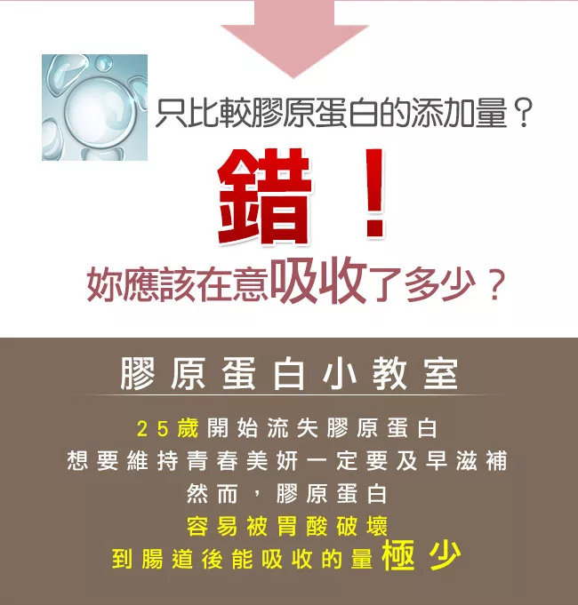 由於膠原蛋白進去人體後容易被胃酸破壞,僅剩極少量才能到腸道吸收。