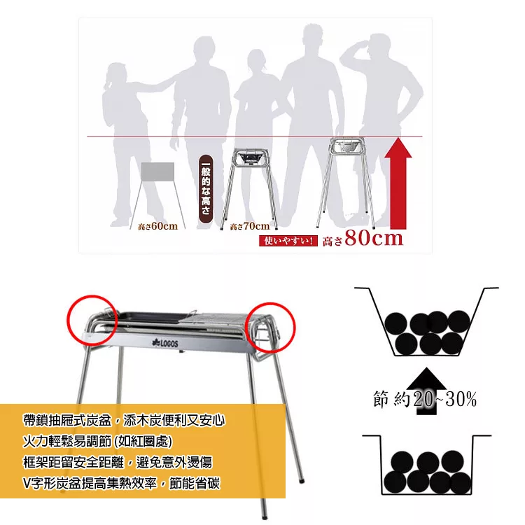 博客來e-coupon LOGOS Smart80不鏽鋼BBQ烤爐LG81065500- M (高度可調整、烤肉架、附鐵板、中秋烤肉)M