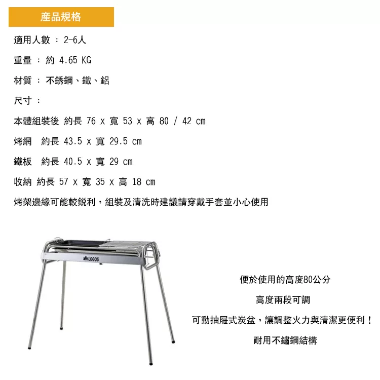 LOGOS Smart80不鏽鋼BBQ烤爐LG81065500- M (高度可調整、烤肉架、附鐵板、中秋烤肉)M 評價